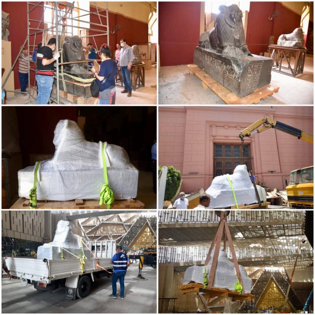 The Grand Egyptian Museum (GEM) received 7 colossi artifacts from the Egyptian Museum in Tahrir to be a part of the 72 gigantic artifacts will be displayed at the Grand Staircase.