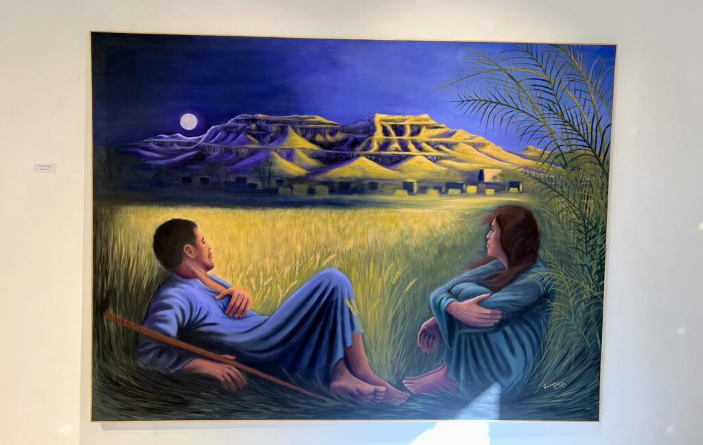 A standout presence in the exhibition is German-American artist Johannes Weninger, whose long engagement with Egyptian culture—particularly in Upper Egypt—is evident in his layered, emotive canvases. Weninger does not exoticize; he listens. His work brings forth a textured empathy, capturing scenes of village life not as frozen tableaux, but as living, breathing spaces.