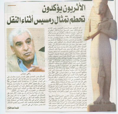 After what was published in local Egyptian newspaper on 20th of February as an Egyptologist said that the statue had been damaged due to relocating and it was better off in its previous location as the vibrations from the underground (subway) were of less danger to the statue than the vibration from the highway near its current location.