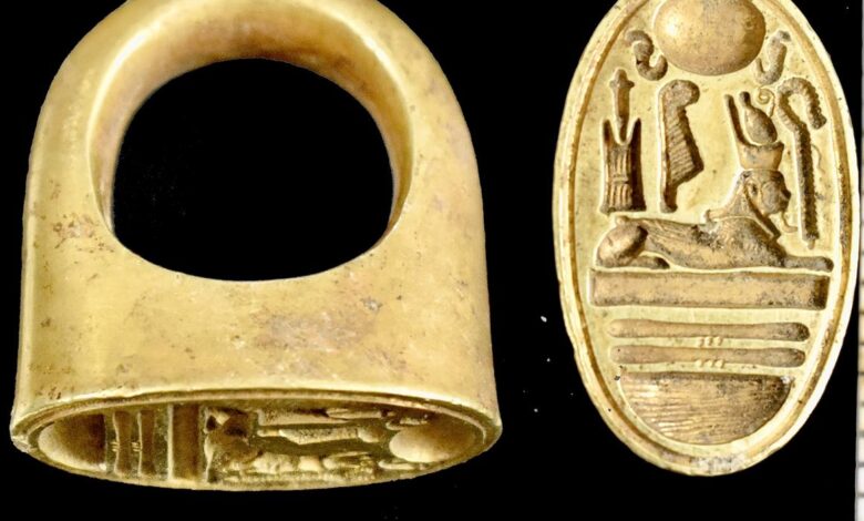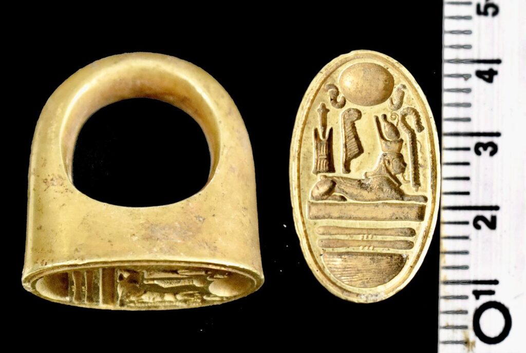 Among the most striking finds was a gold ring engraved with the cartouche of Ramesses III, the warrior-king who defended Egypt from the Sea Peoples in the 12th century BCE. Other notable discoveries include a collection of beads and gemstones in various shapes and colors, as well as a small ivory box.