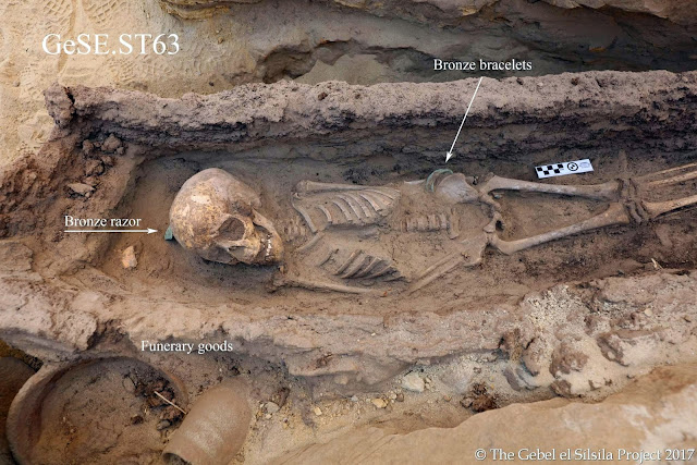 The archaeological material includes bones, ceramic vessels, jewellery, textile, âplasterâ, and wood. The intact child burials â some unique and others first of their kind at Gebel el-Silsila with their burial goods in situ, adds important insights into the local and contemporaneous funerary customs, pathological information (general health and injuries of the entombed) and add clues into the social and economic organisation of the site during the Thutmosid period, supporting the theory of individuals and entire families involved with quarry work states assistant director John Ward.