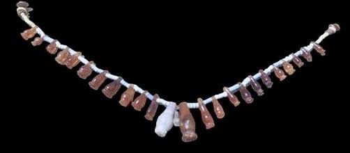 One of the most significant finds in the fortress was the burial of a cow, symbolizing strength, abundance, and prosperity, attributes associated with the cow as a celestial deity. The team also discovered two limestone blocks, one inscribed with the hieroglyphic titles of King Ramesses II and the other bearing the name of an official called “Bay.” Additionally, a faience scarab inscribed with “Amun – Lord of the Sky,” topped with a lotus flower, was found, along with another scarab bearing an image of the god Ptah carved from schist, half of a bronze ring inscribed with the god “Amun-Horakhty,” and two necklaces made of faience and agate in the shape of pomegranate flowers.