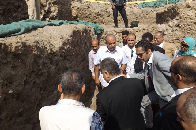 During his visit to the excavation site today as a part of the general site management and development for the area, Dr. Mamdouh El Damaty announced the discovery of a southern part of mud brick historic northern wall of Cairo in Al Gamaliya. It is believed to be a part of the old Fatimid wall.