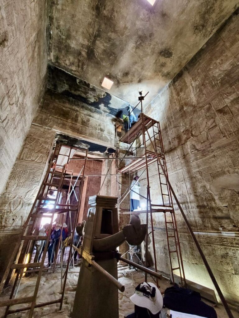 Dr. Mohamed Ismail Khaled, Secretary-General of the Supreme Council of Antiquities, explained that the temple restoration project is part of the Ministry of Tourism and Antiquities’ strategy to preserve Egyptâs cultural and civilizational heritage, which belongs to humanity as a whole. The project aims to clean the temple walls, republish its texts and scenes, and document them digitally in new publications with more accurate translations and studies than those previously published in the last century. The project also includes restoring and cleaning the temple’s inner sanctuaries and walls, fixing the colors, removing soot, and conducting detailed studies of the texts and scenes on the walls of the Holy of Holies and the adjacent rooms.