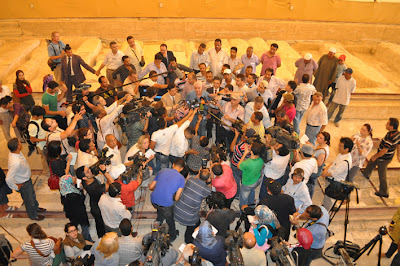This morning Dr. Zahi Hawass held a press conference at the site to announce the beginning of the stone cover removal in order to begin the restoration project of the solar boat.