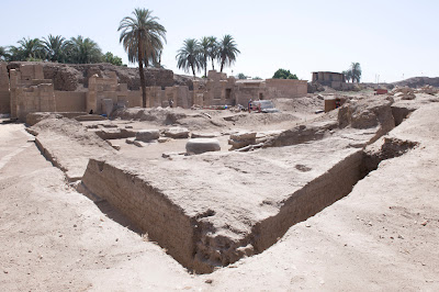 The mission also unearthed a stone wall surrounding the temple of Ptah, the chief god of the city of Memphis. His temple had been built on the site of an earlier Middle Kingdom temple, and restored by Shabaka. The mud brick wall is 2 meters height and 1 meter depth